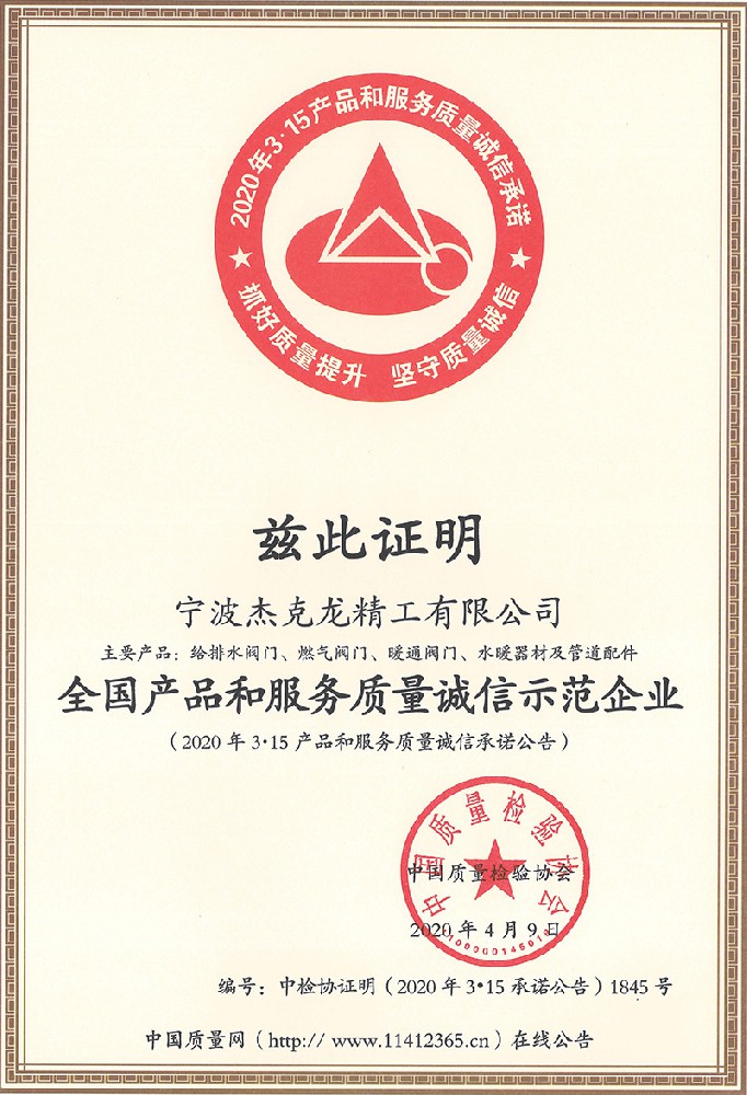 2018年11月8日,杰克龍精工公司正式獲得由浙江制造國際認(rèn)證聯(lián)盟和杭州漢德質(zhì)量認(rèn)證服務(wù)有限公司聯(lián)合簽發(fā)的《浙江制造認(rèn)證證書》,